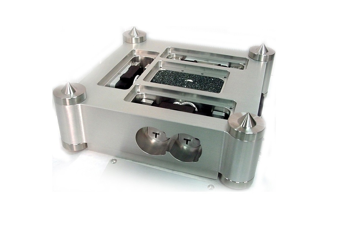 The substantial, beautifully-crafted chassis is precision CNC-machined from a solid aerospace-grade aluminium alloy that effectively shields against RFI (Radio Frequency Interference). Three separate milled compartments house three independently-wired duplex receptacles using top-quality Fluorpolymer-shielded high-purity silver-plated Alpha-OFC. The hot and neutral conductors from the IEC loom into a large, centrally-located chamber–secured Bugatti-like with eight beautifully machined rivets–that’s filled with Furutech’s EMI-absorbent Formula GC-303 material. GC-303 absorbs the high-frequency noise that develops whenever passing current through wire. Furutech’s patented GTX-D NCF Receptacles enhance the vault-like build, ensuring the tightest and most secure power cord fit imaginable.
