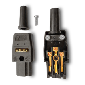 HMS has developed a surface treatment to bring down the harmful contact resistances to one hundredth, compared to standard plugs and sockets. The visible gold plating is merely the anti corrosive coating; of crucial importance is the extremely soft and thick copper layer underneath.
