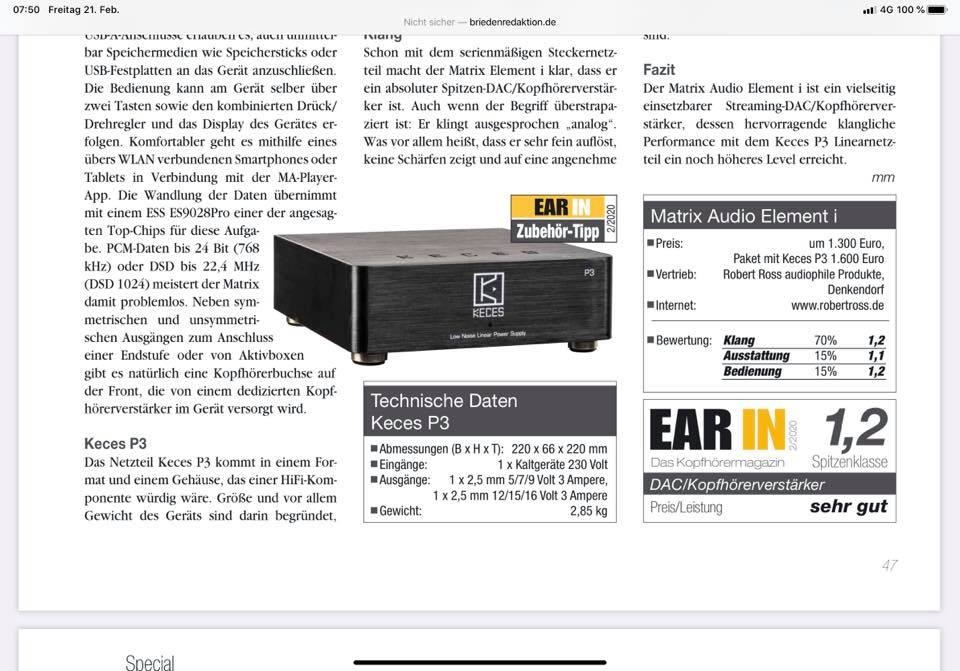 Keces P3 Externes Netzteil im Test von Harald Wittig @ Fidelity-online.de