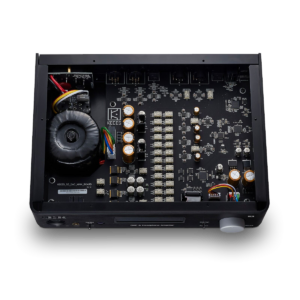 Het voorversterkergedeelte heeft een 128-staps volumeregelaar op basis van relais, dus een nauwkeurige balans en een extreem hoge signaal-ruisverhouding zijn gegarandeerd. Vervormingscijfers zijn verwaarloosbaar klein. De elegante afstandsbediening regelt het volume vanuit uw luie stoel.