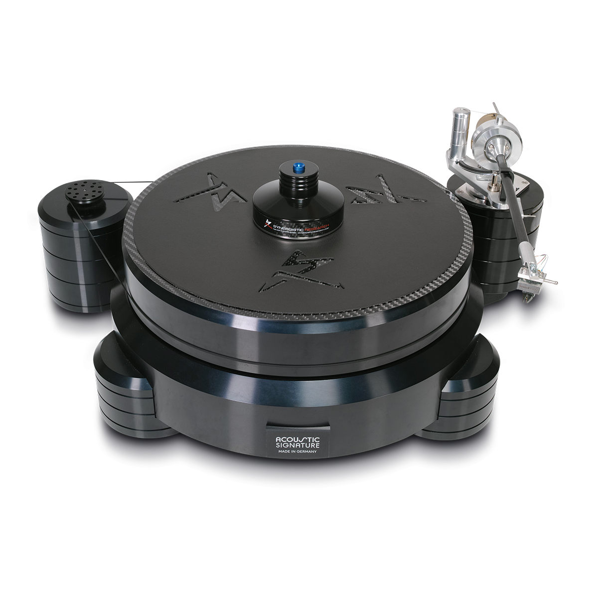During the design phase, SR pursued two competing designs simultaneously. One was a record clamp that locked to the center platter pin, and the other was a suspended record weight. Initially, the designers felt the record clamp would offer better performance but quickly discovered one significant drawback, once locked down the clamp becomes an extension of the platter and this prevents minute variations in lateral and vertical movement, thus compressing the soundstage when directly compared to our suspended record weight design. Synergistic then maximized performance by experimenting with different mass loads in the main stainless steel and carbon fibre body and various leaf spring suspensions that form the connection between the mass of the stainless steel and the tungsten carbon bearings that make contact with the record itself. Because of the inertia of the high mass of the UEF Record Weight, this adds to the speed stability of the platter (less wow & flutter).
