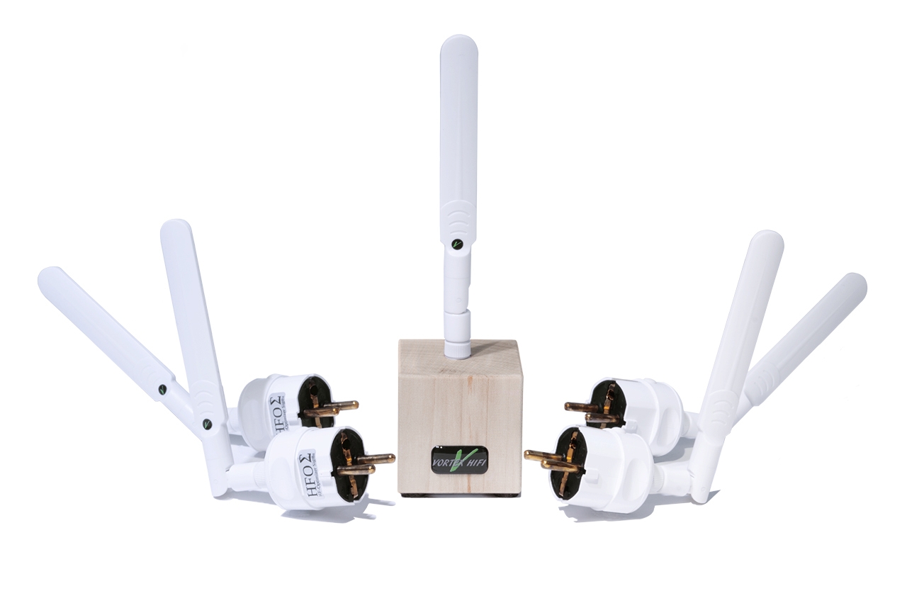 The Vortex HiFi High Frequency Optimizer (HFO) is a set of devices which handles all kinds of low- and high frequency disturbances in your room. It is able to transform harmful GSM, DECT and WiFi radiation into energy that even strengthens you. Even low frequency mains related radiation is turned into positive energy, strengthening your nervous system and cell communication. Your home will become an oasis of calmness instead of a stressful place to be. It will give you energy, instead of taking your energy. Even geopathaogenic interference zones no longer deprive you of your strength! What this all does to your sound and vision just cannot be described with words, you have to experience it yourself…